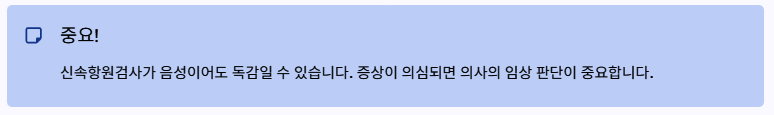 신속항원검사의 진단 정확도는 60~80%이므로, 검사가 음성이어도 실제로는 독감일 수 있습니다. 따라서 증상과 임상 판단이 중요합니다.