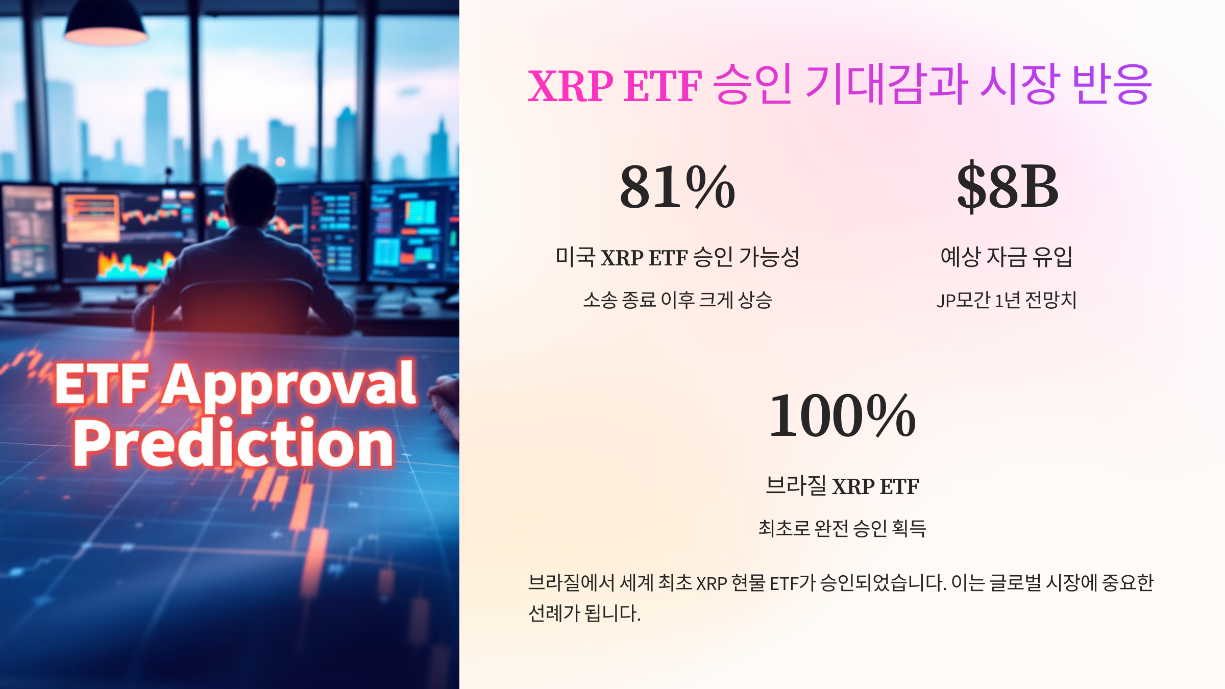 ETF(Exchange Traded Fund)는 기관 자금이 대규모로 유입될 수 있는 구조를 갖고 있기 때문에, 승인만 되면 수요가 급증할 수밖에 없어요. 투자자 입장에서는 복잡한 지갑 생성 없이 증권사를 통해 리플에 투자할 수 있게 되니 진입 장벽이 낮아지고, 기관들은 법적으로 명확해진 리플을 안전하게 포트폴리오에 담을 수 있게 되는 거죠. 실제로 미국에서는 이미 비트코인 ETF가 출시된 이후, 수십억 달러의 자금이 유입되면서 가격이 크게 상승한 사례가 있어요.
