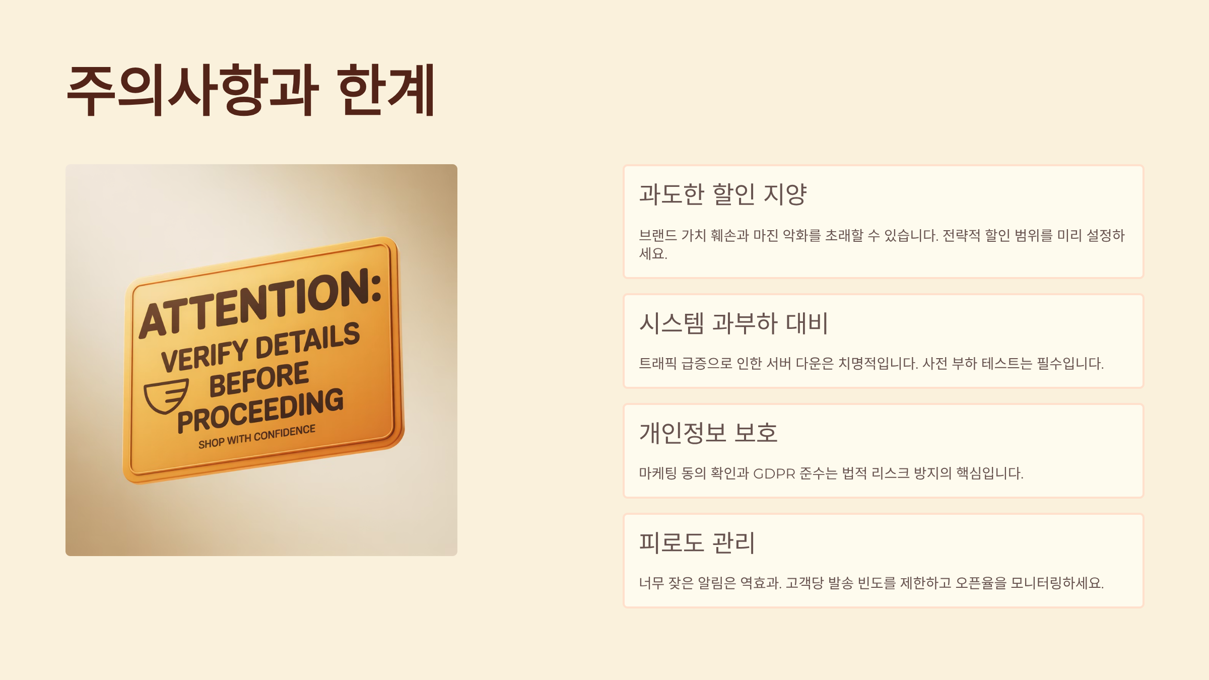 예를 들어, 타임딜 시작 직전에 푸시 알림이나 이메일 리마인더를 통해 장바구니에 담긴 상품을 다시 상기시키는 거예요. 여기에 “마감 임박!”, “1시간 한정 세일!” 같은 문구를 넣으면 클릭률과 전환율이 눈에 띄게 올라가요. 이건 단순한 리마인드가 아니라, ‘행동을 유도하는 마무리’ 단계라고 할 수 있어요.