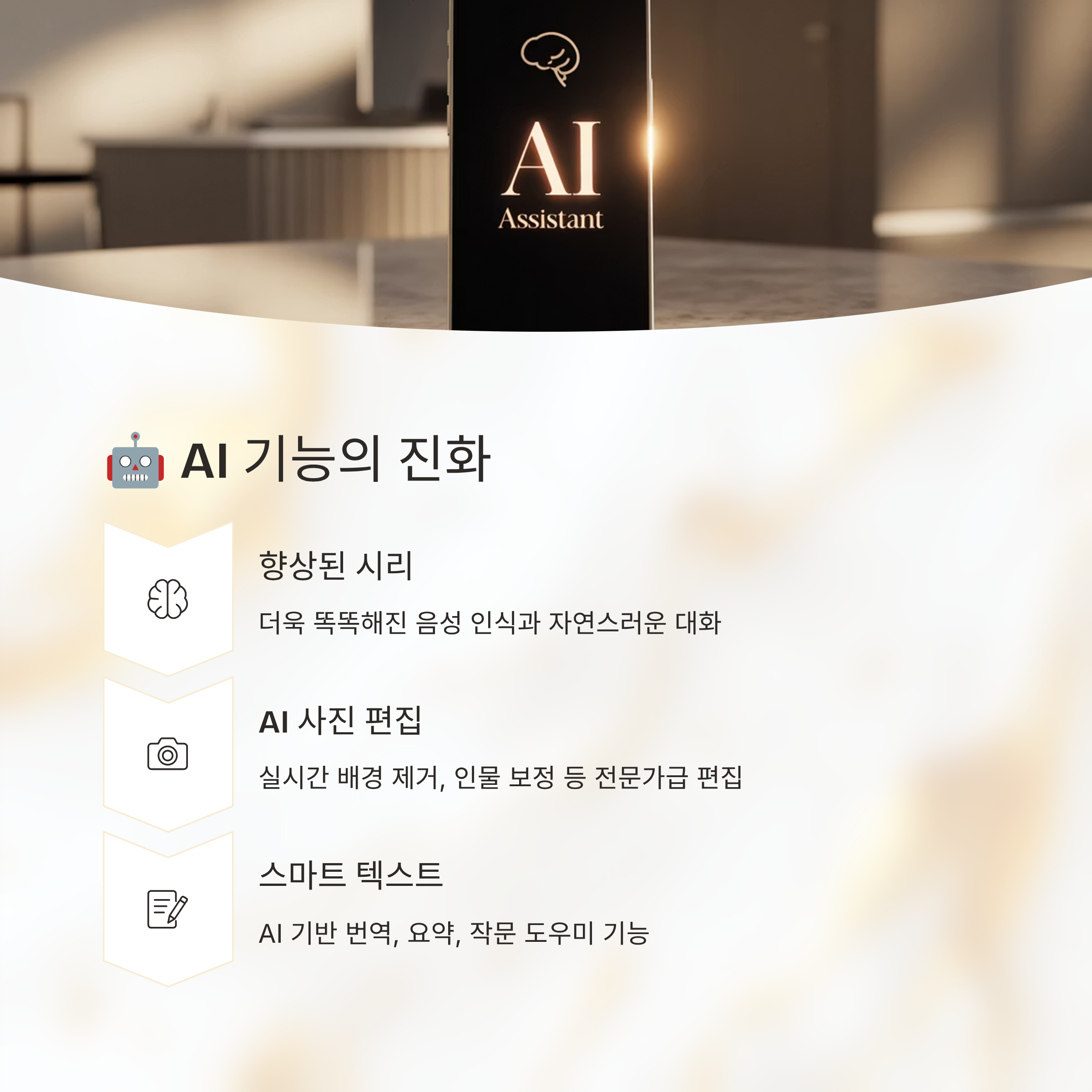 iOS 26을 기반으로 한 AI 기능도 한층 스마트해졌어요. 사진 분류, 음성 명령, 실시간 번역, 화면 내 검색 기능 등이 강화되어 일상에서 AI를 체감할 수 있을 거예요.