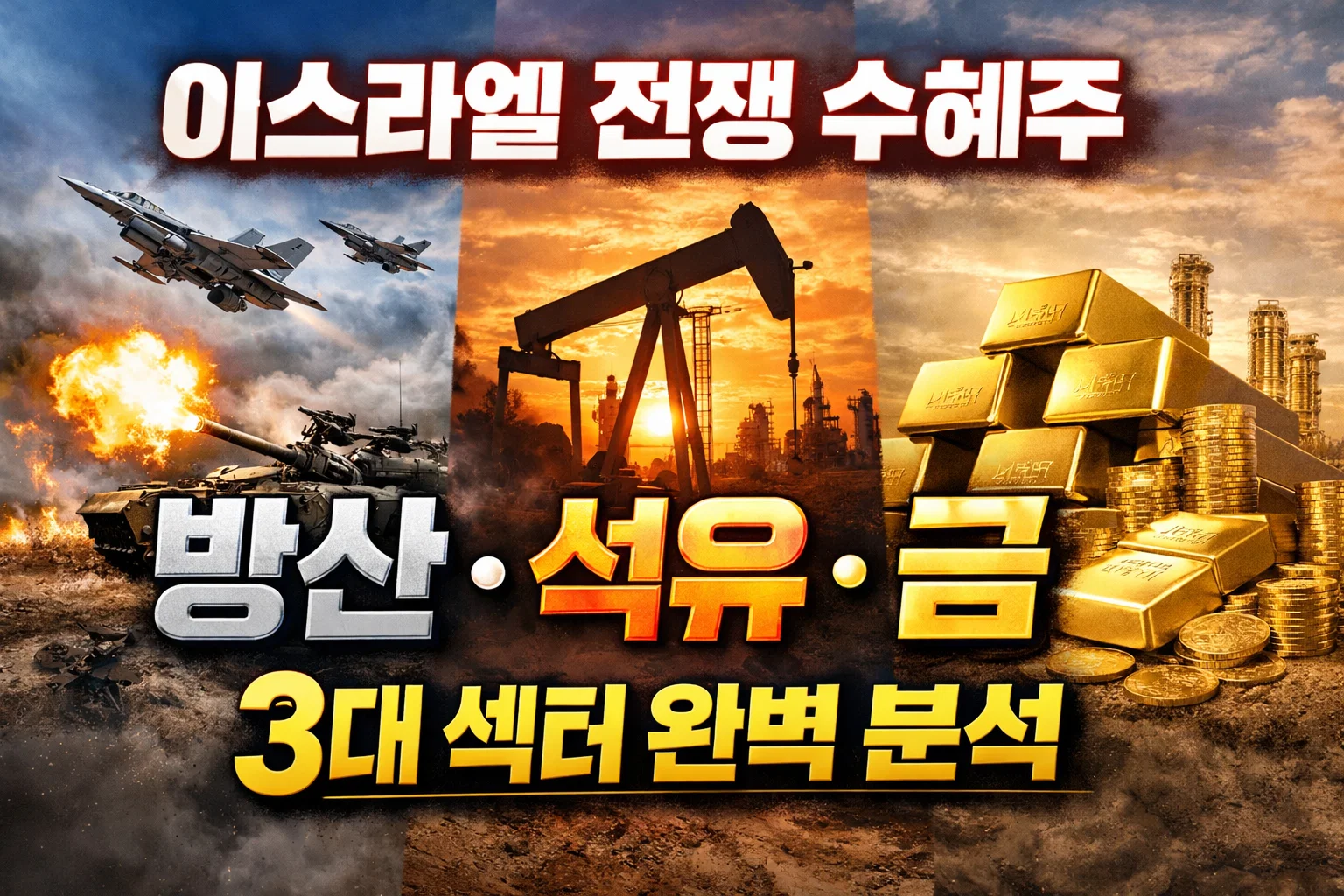 메타설명: 2026년 이스라엘·이란 전쟁으로 급등하는 방산·석유·금 3대 섹터 핵심 종목과 ETF를 비교 분석합니다. 한화에어로스페이스, 흥구석유, 금 ETF 등 수혜주 투자 전략과 리스크를 한눈에 확인하세요.