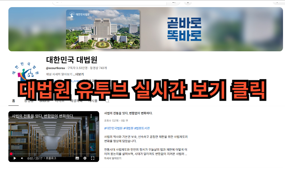대법원 유튜브 검색 → 실시간 LIVE 광고 없음, 주문 중심