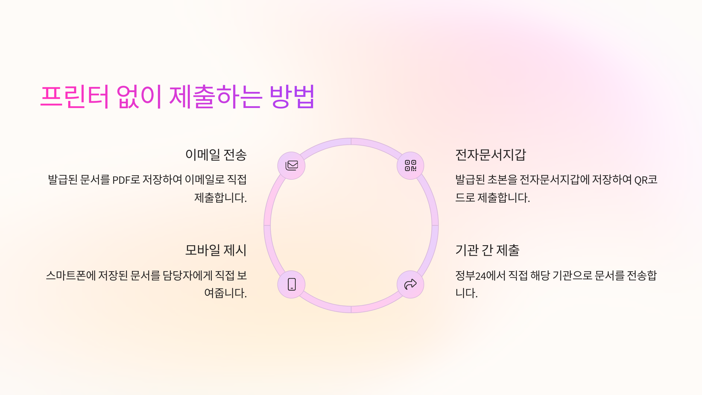 ✔ 제출처가 출력본만 받는 경우 - 가까운 주민센터나 무인발급기에서 출력 - 또는 PDF 저장 후 출력 가능한 곳(PC방, 편의점, 회사 등) 이용