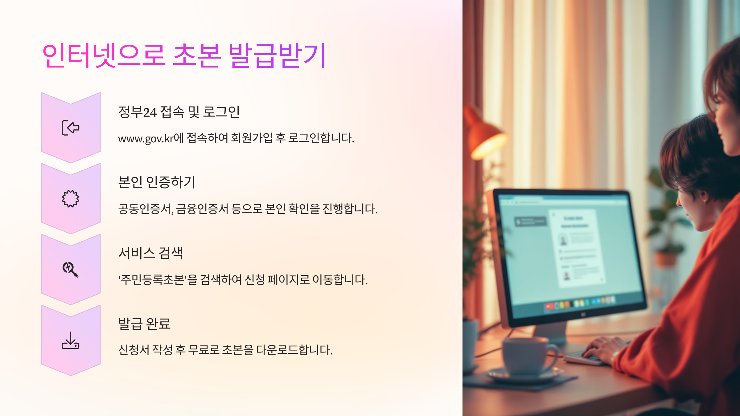 입사 서류, 병역사항, 주소 변경 이력 제출 등에 꼭 필요한 주민등록초본! 이제는 주민센터 안 가도 집에서 인터넷이나 스마트폰으로 간단히 발급받을 수 있어요. 😊