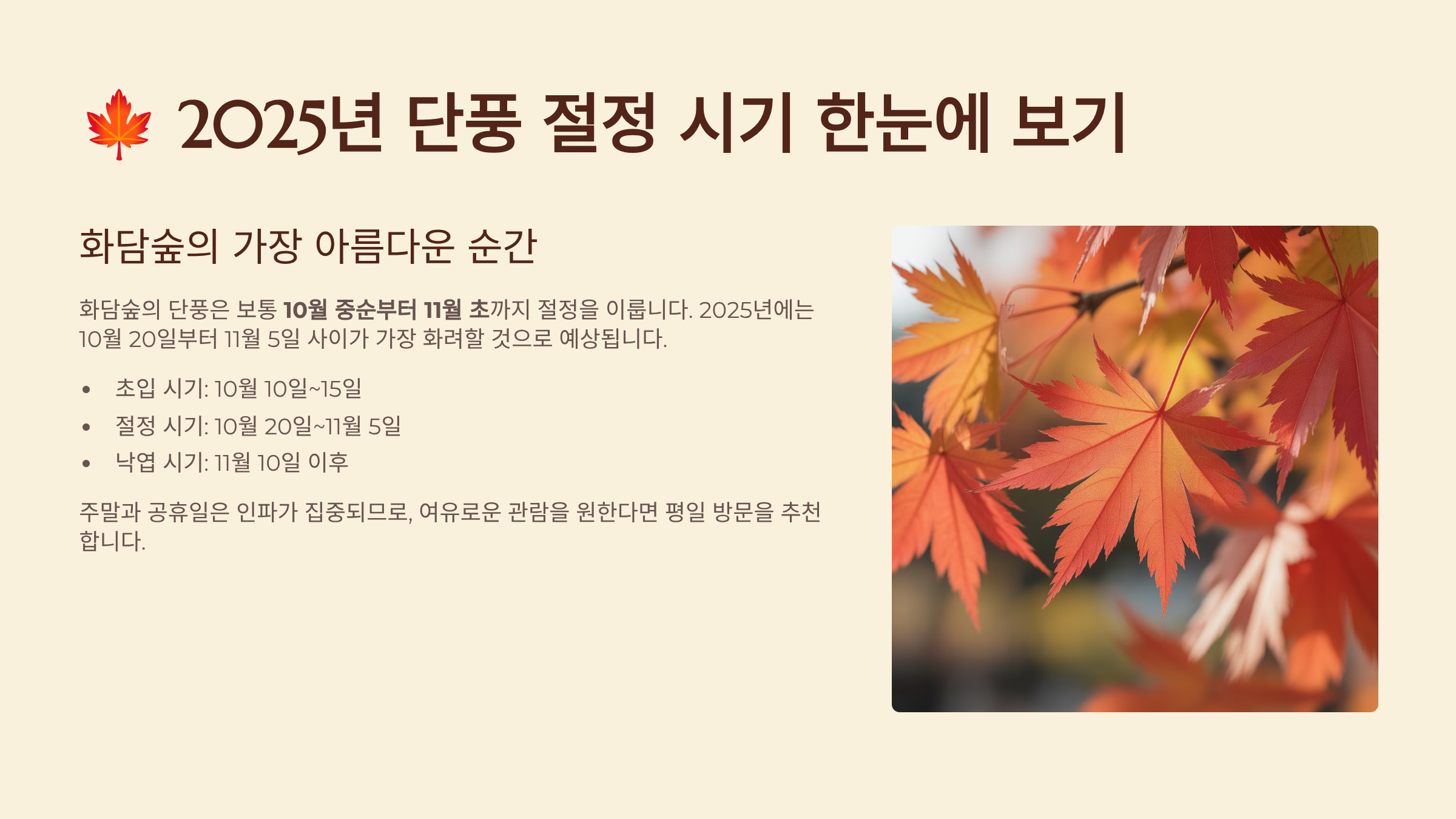 ⏰ 2025년 단풍 시즌 예약 일정