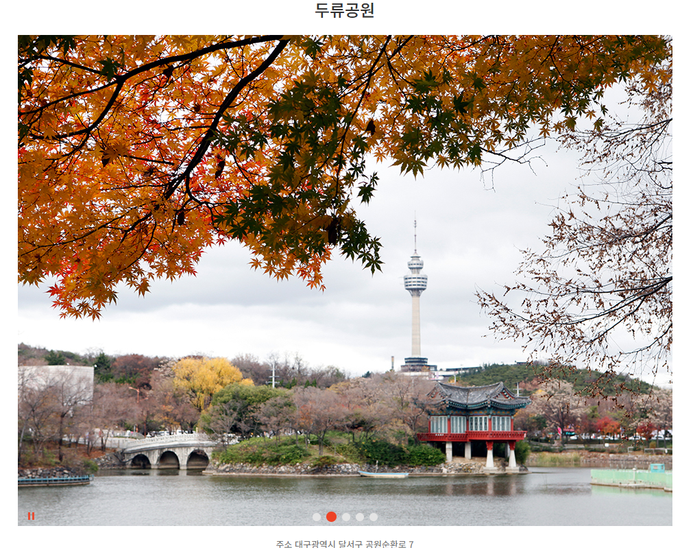 | 두류공원 | 넓은 공원에 벚꽃길이 조성됨 | 자연 속에서 여유롭게 산책 가능 |
