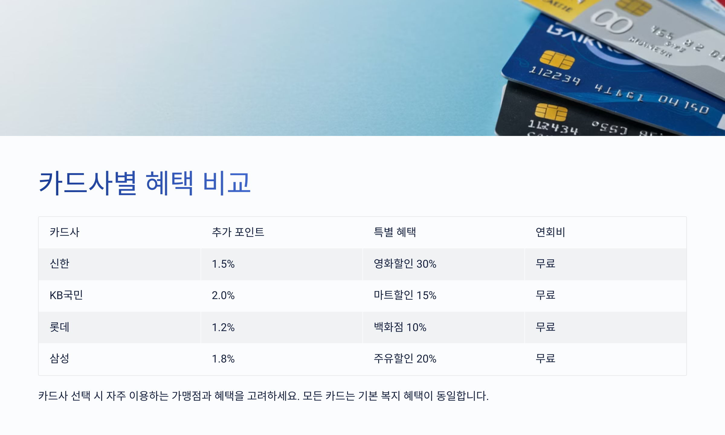 각 카드사의 혜택을 비교하고 본인에게 가장 유리한 카드를 선택하세요! 💳