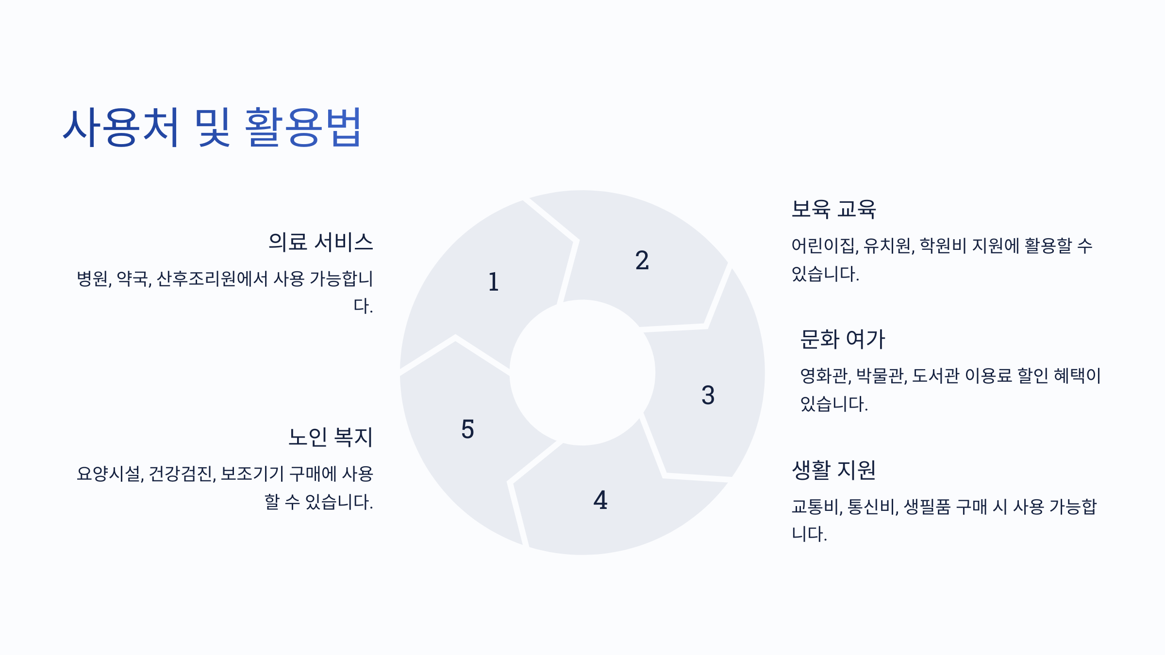임산부 검진, 산후조리, 예방접종, 아동 치료 등에 사용 가능해요.