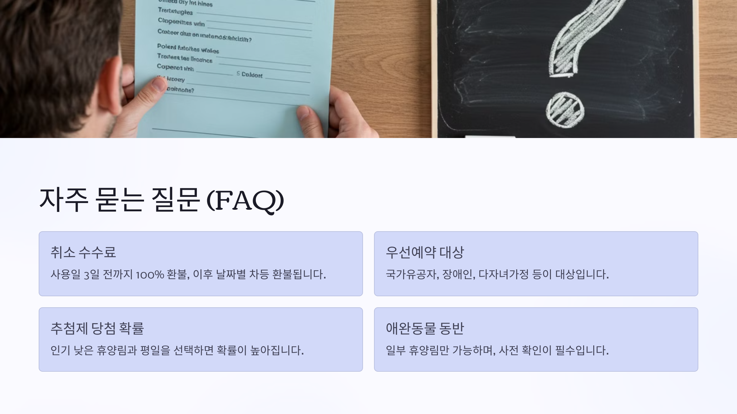 원하는 숙소 유형을 결정했다면, 이제 예약과 관련된 자주 묻는 질문(FAQ)을 정리해볼게요! 📢