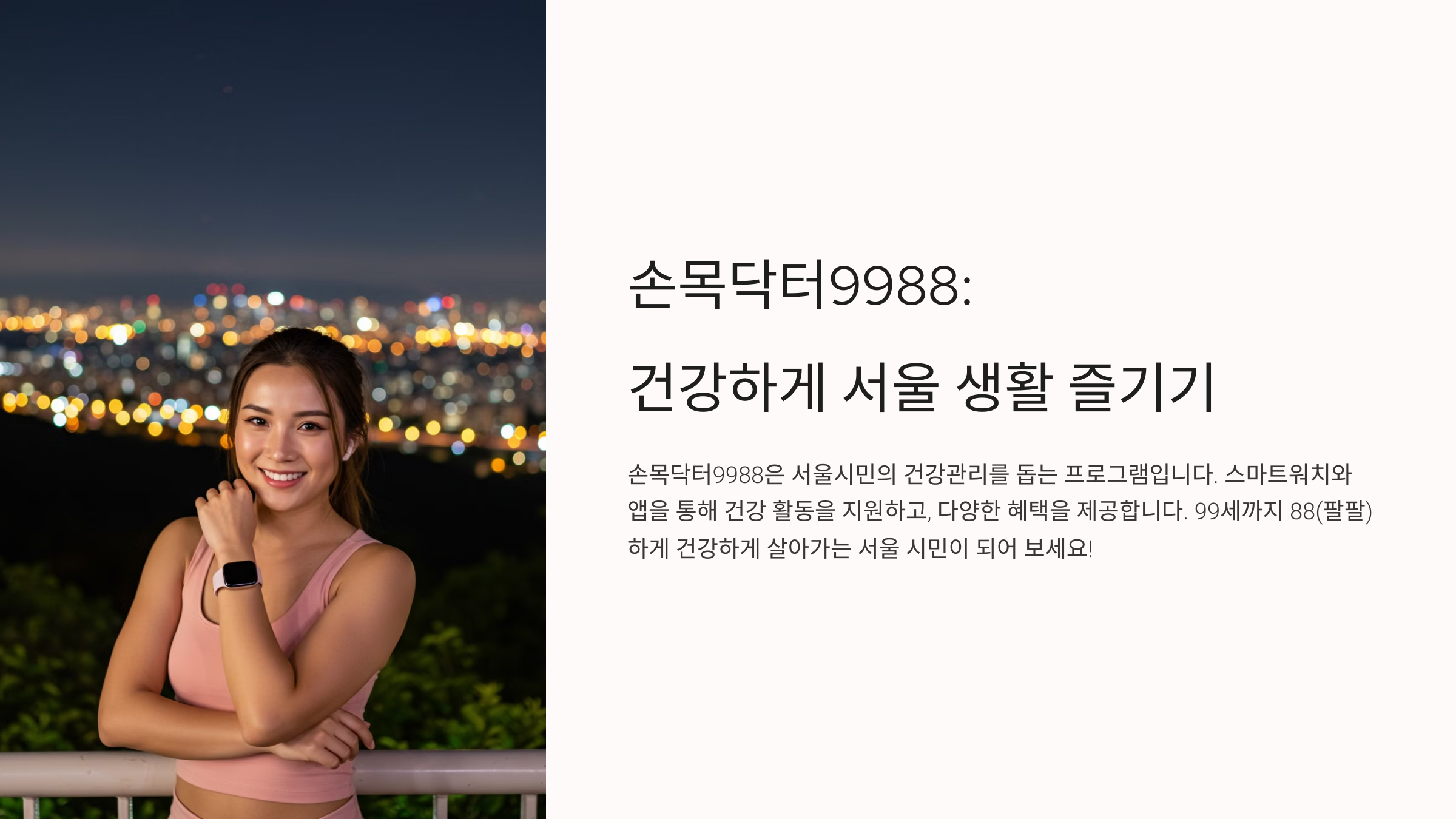 손목닥터9988은 서울시민이라면 누구나 무료로 참여할 수 있는 스마트 헬스케어 프로그램이에요. 참여하면 스마트워치를 지급받고, AI 건강 코칭, 포인트 적립 혜택까지 누릴 수 있어요! 💡 참여 방법을 단계별로 정리했으니, 그대로 따라 해보세요! ✅