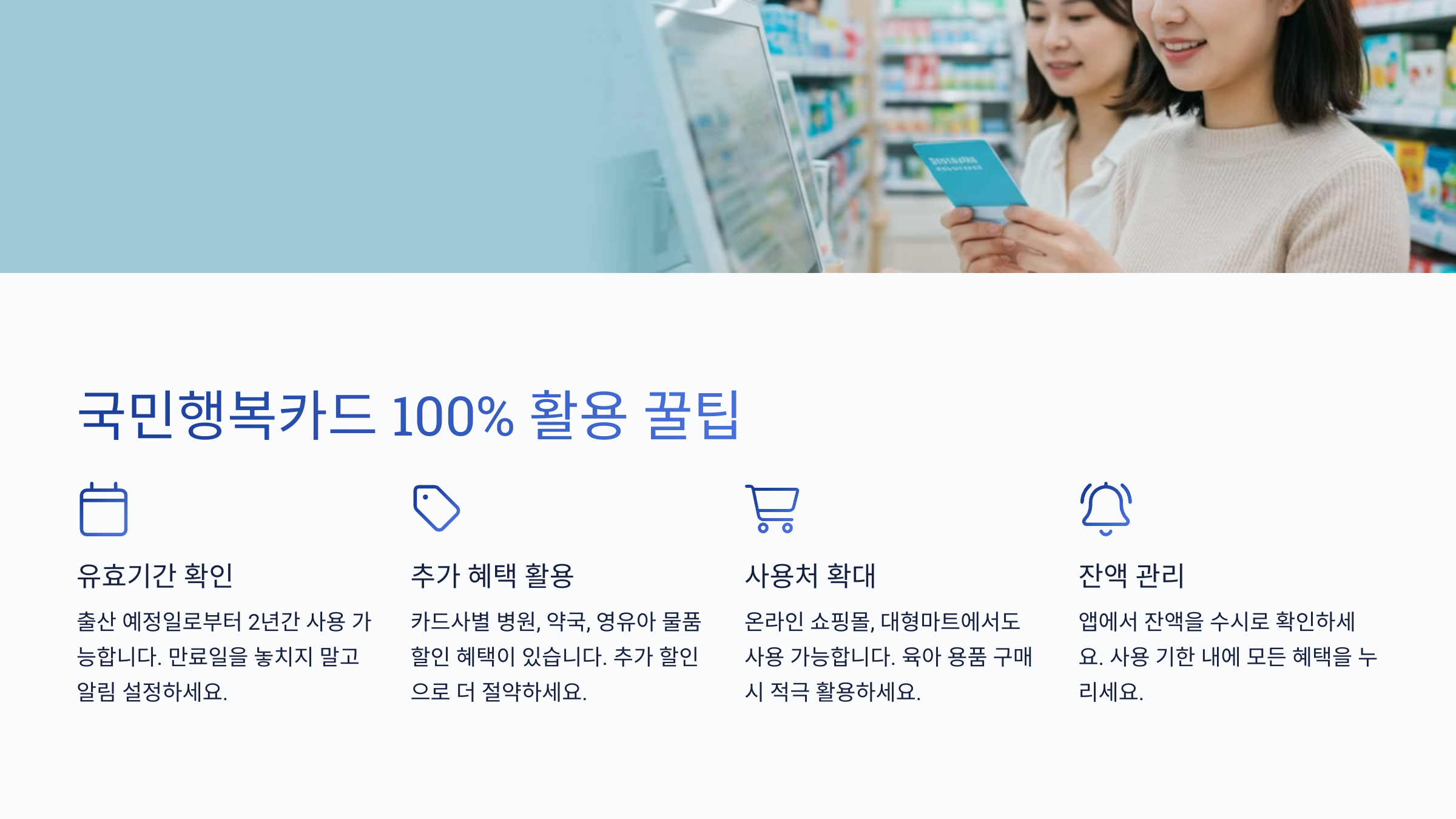 국민행복카드는 임산부, 영유아 보호자, 의료급여 수급자 등을 위한 최고의 복지카드예요. 신청 대상이라면 놓치지 말고 꼭 발급받아 혜택을 누리세요! 😊