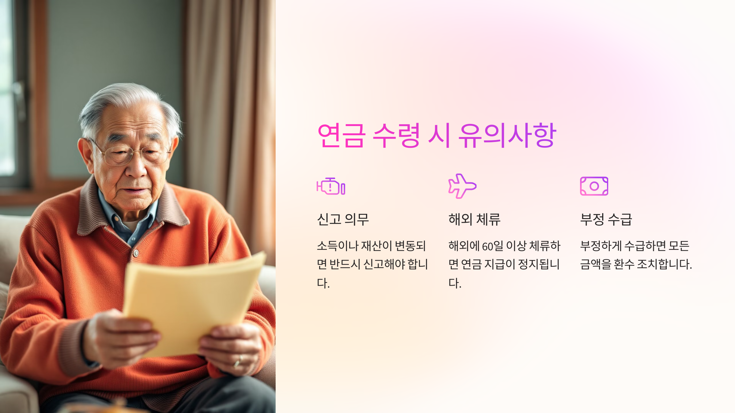 이제 기초연금 수령 시 꼭 알아야 할 유의사항을 확인해볼까요? 😊