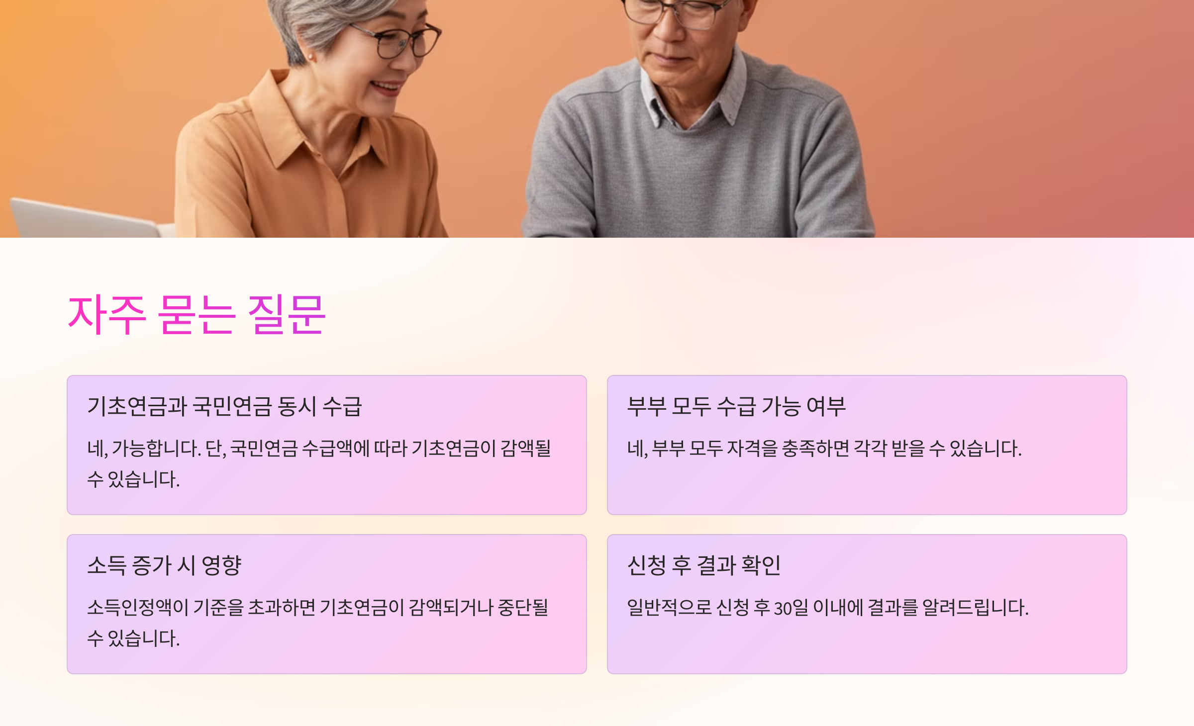 이제 기초연금에 대한 궁금증을 풀어보는 FAQ를 확인해볼까요? 🤔