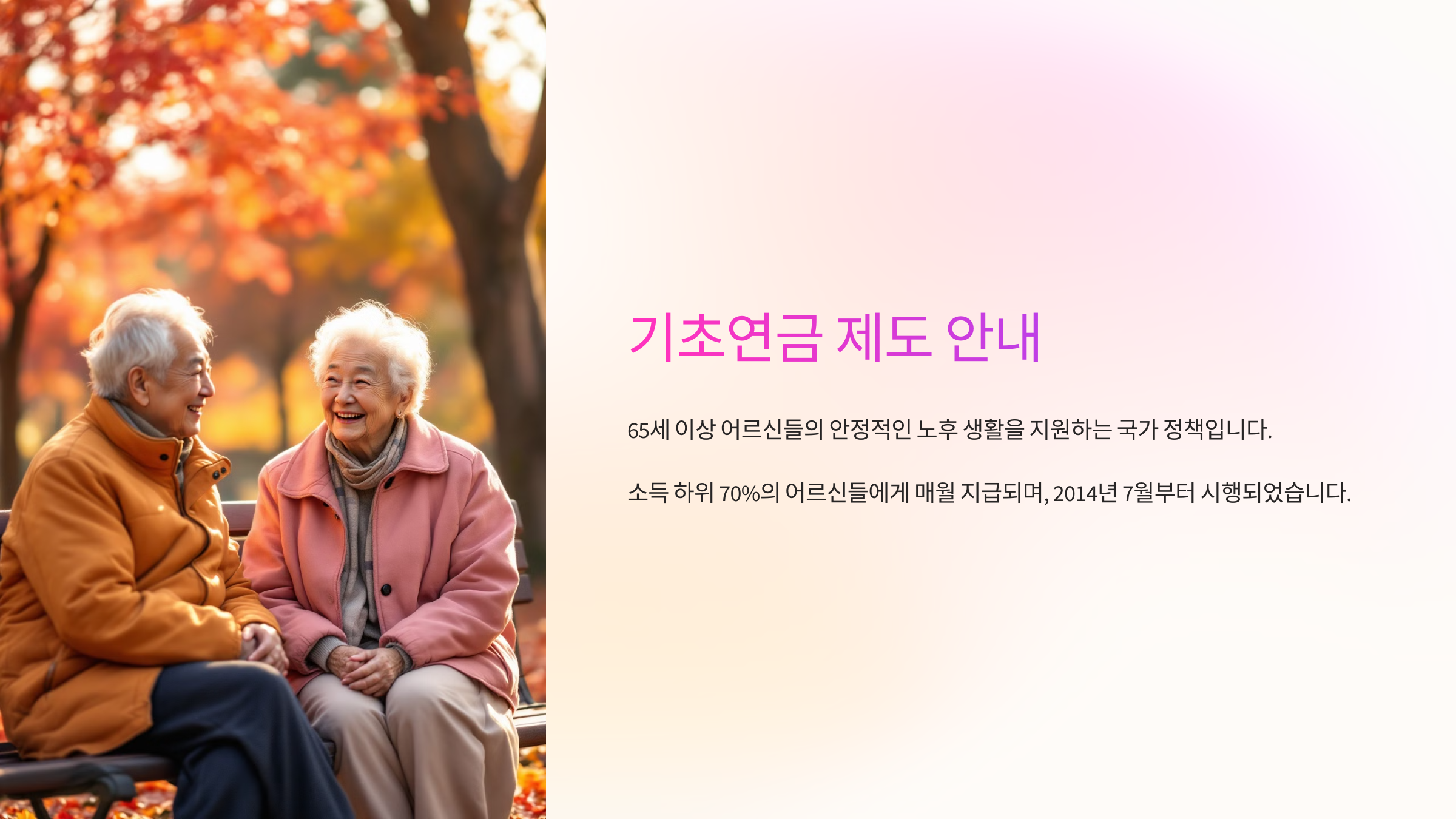 💰 2025년 기초연금 신청이 시작되었어요! 만 65세 이상 어르신들이 받을 수 있는 기초연금은 생활비 부담을 덜어주는 중요한 제도예요. 올해부터 지원 대상과 지급액이 확대되었으니 꼭 확인하고 신청하세요! 😊