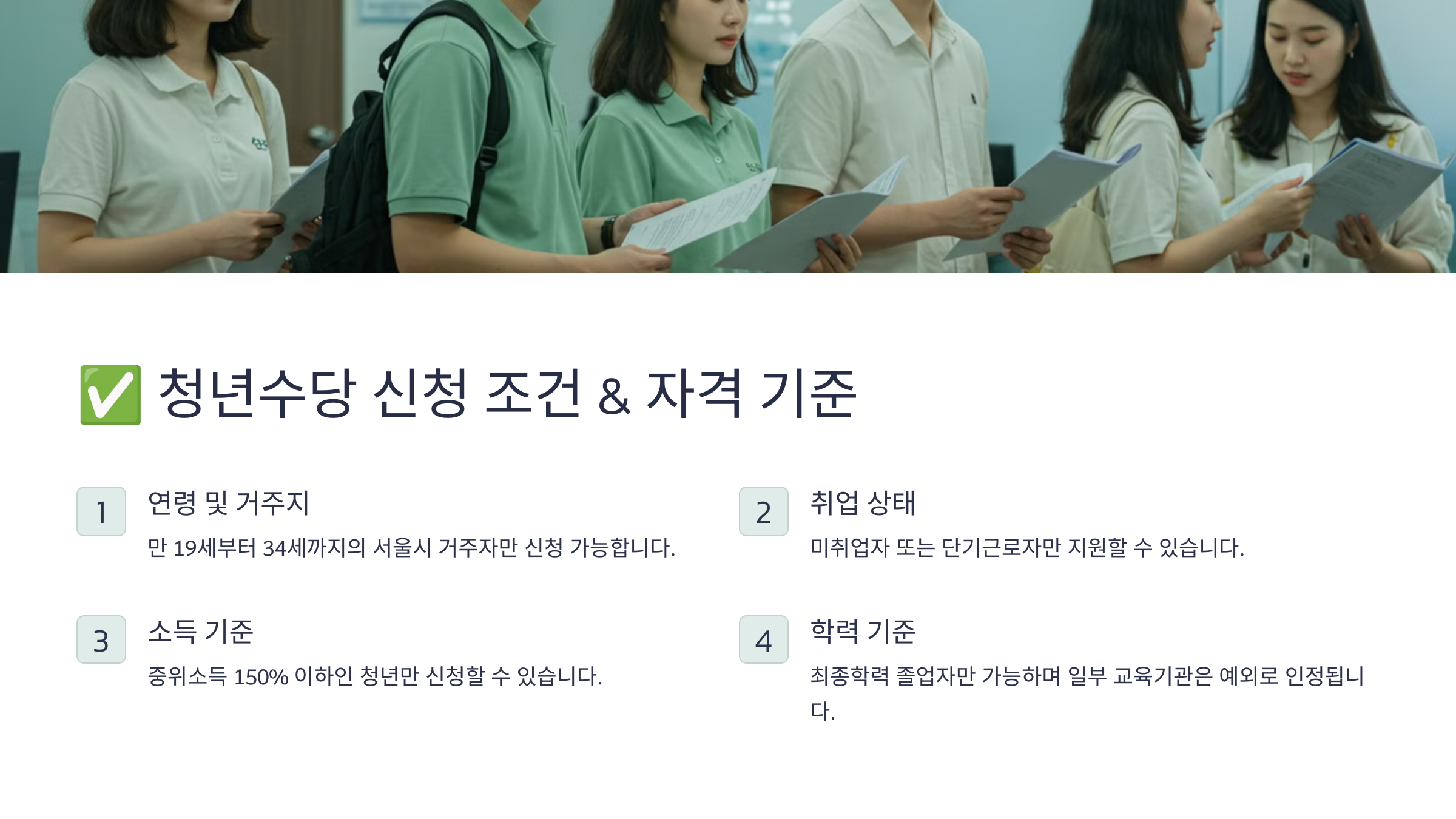 📢 다음 섹션에서는 청년수당 신청 조건 & 자격 기준을 알아볼게요! ✅