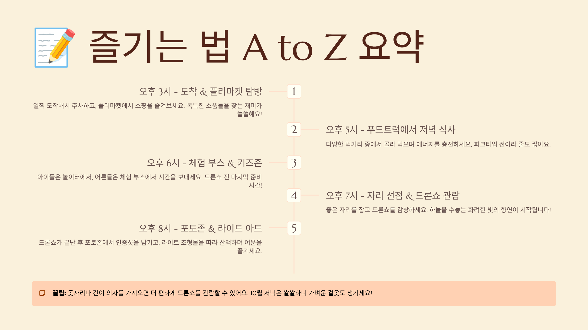 단순히 앉아서 공연만 보는 것보다 하루 종일 즐길 거리로 꽉 채우면 훨씬 기억에 남는 축제가 돼요. 꼭 놓치지 말고 풀코스로 즐겨보세요!