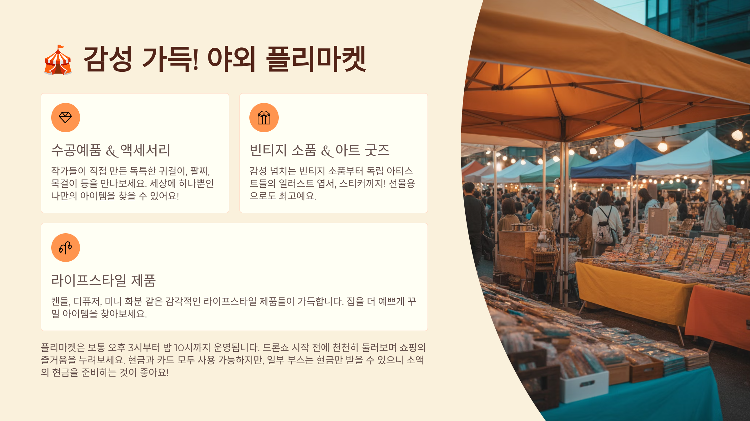 ✔ 5~6시: 플리마켓 구경 + 간식 구매