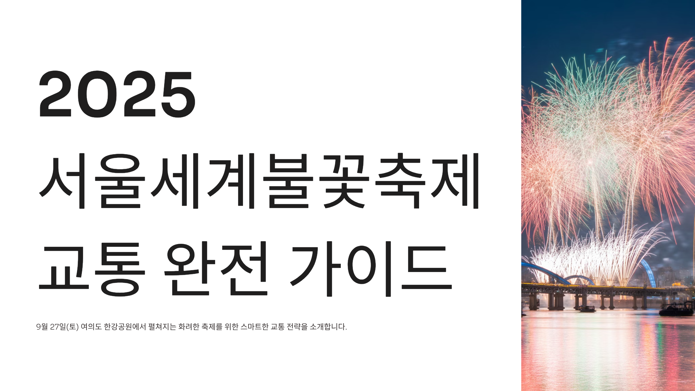 2025년 9월 27일(토) 열리는 세계불꽃축제는 단 하루지만, 그 파급력은 어마어마해요. 여의도 한강공원 일대는 당일 교통통제와 주차제한, 귀가전쟁까지! 미리 알고 움직여야 스트레스 없이 즐길 수 있답니다. 🚀